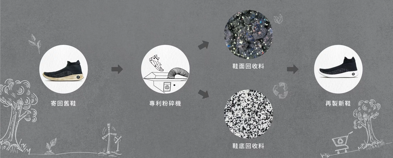 堅持著簡單製造,讓襪鞋一體成形,也可以回收再製