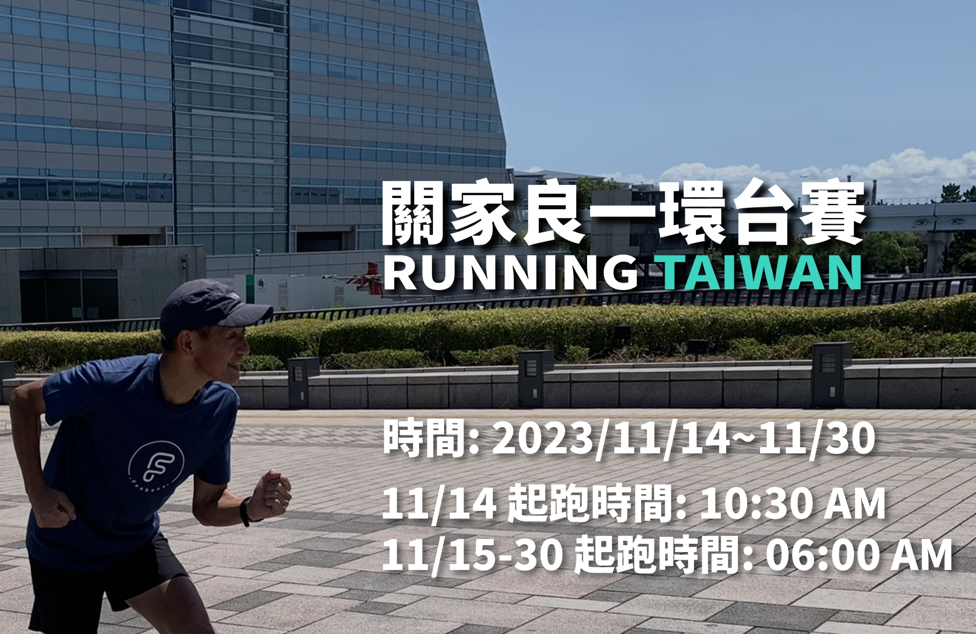 世界超級馬拉松冠軍 - 關家良一,2023年與Feebees合作舉辦Running Taiwan環台賽,11/14~11/30將迎來一場促進台日交流的的馬拉松嘉年華,邀請各地區的跑者、民眾一同來陪跑,讓我們「跑動台灣,與世界對話」吧!