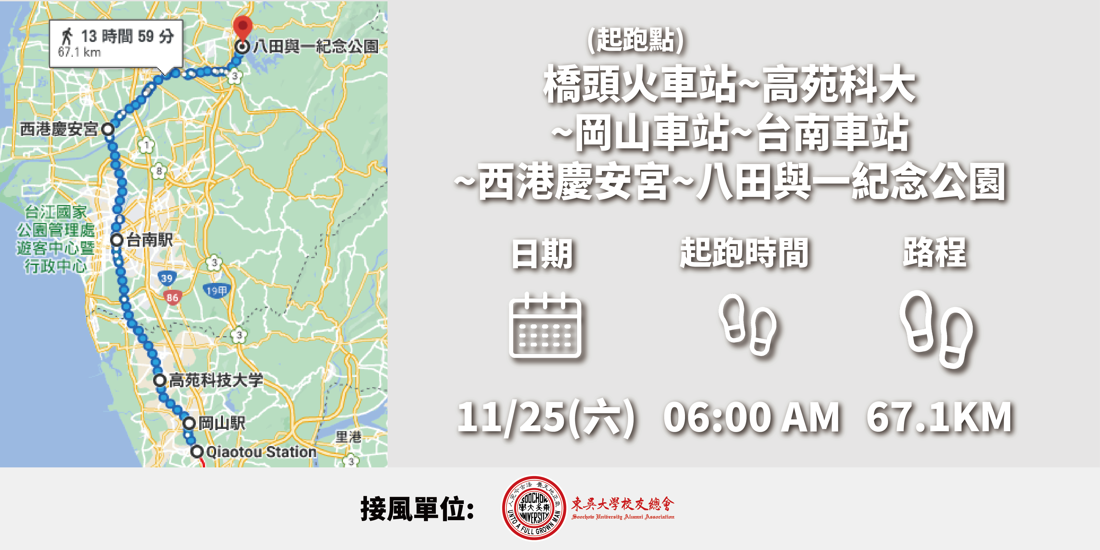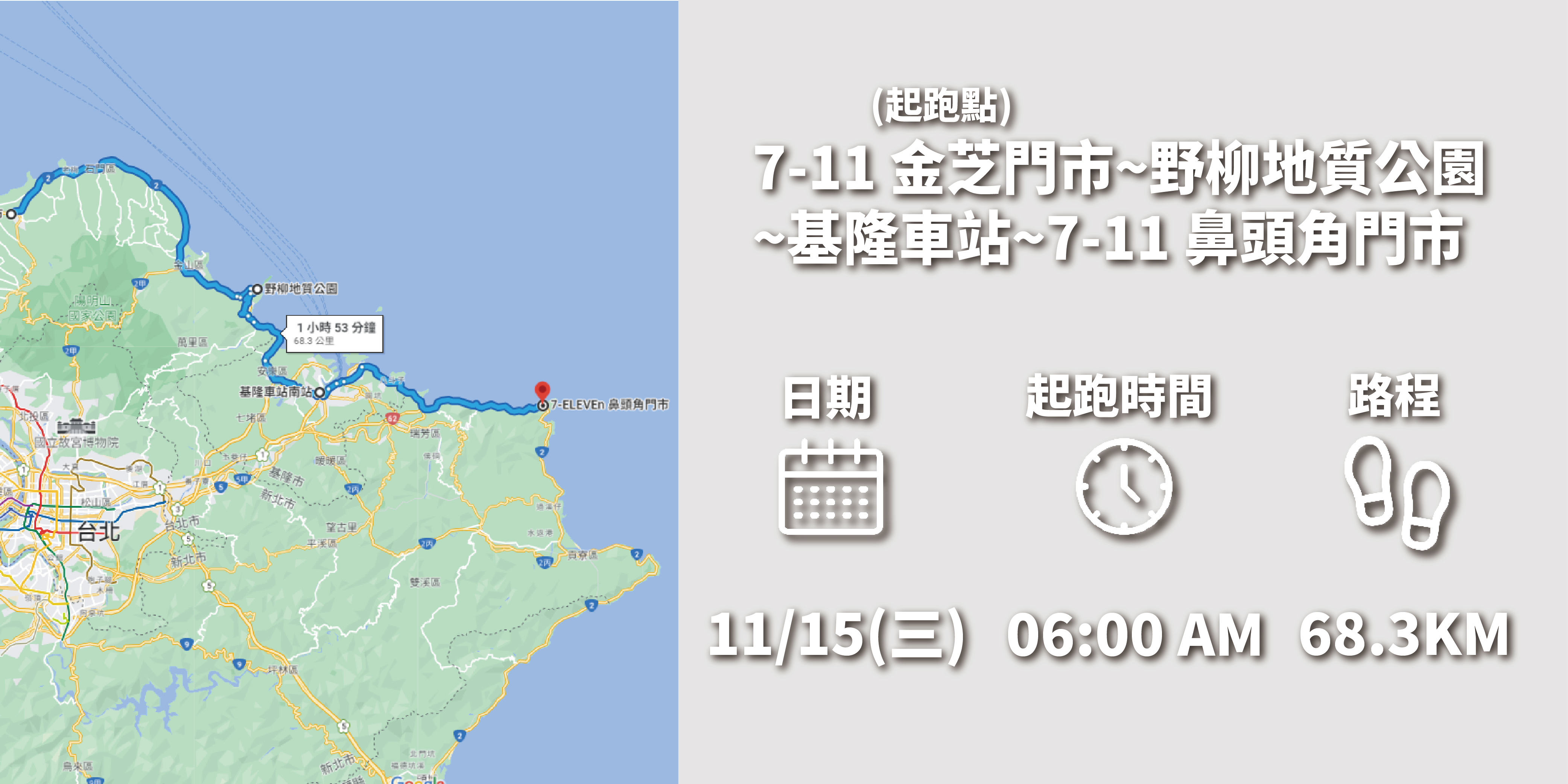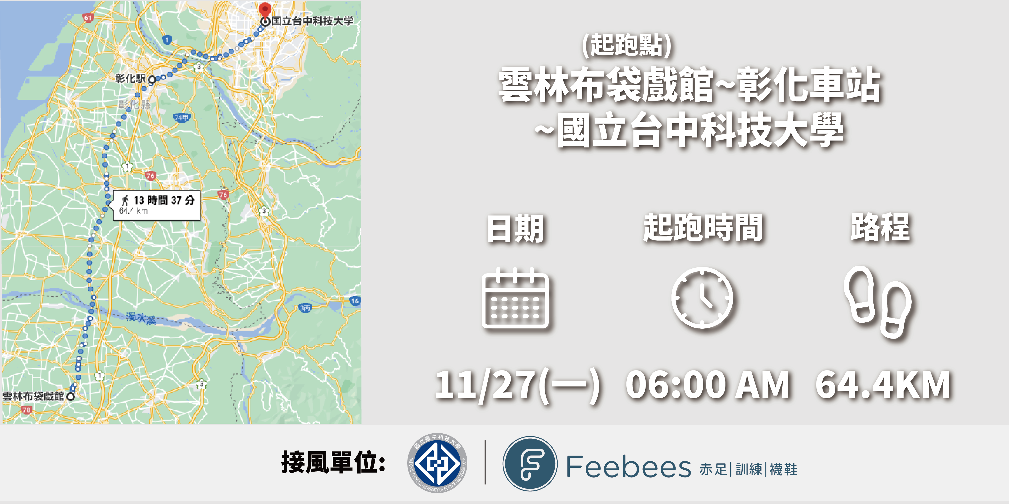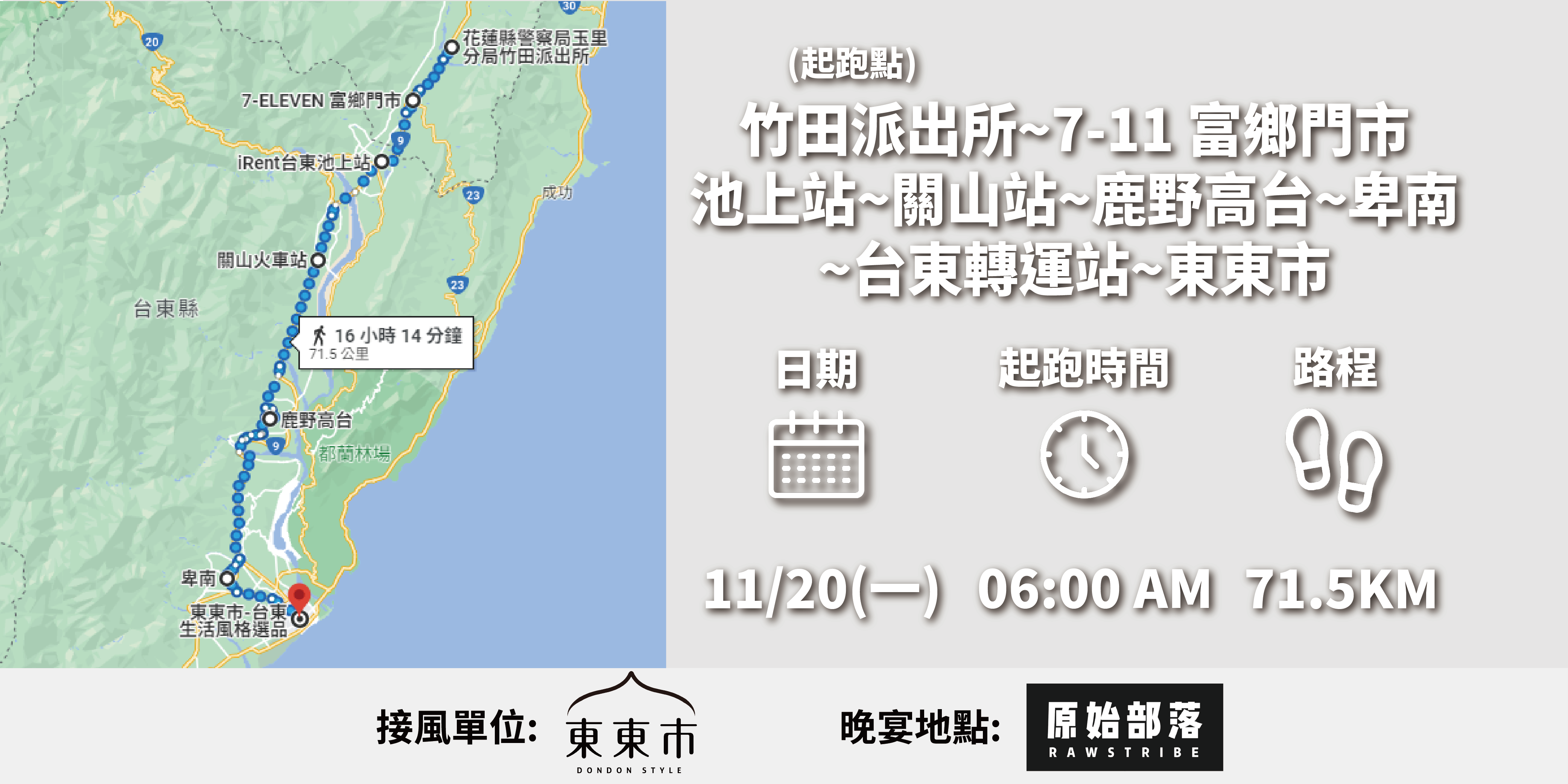 第一站將在東吳大學開幕 早上10:30開始,由北至南、東至西,繞行台灣一圈,總長1100公里,並邀請全台的跑者、民眾一同來陪跑和交流。