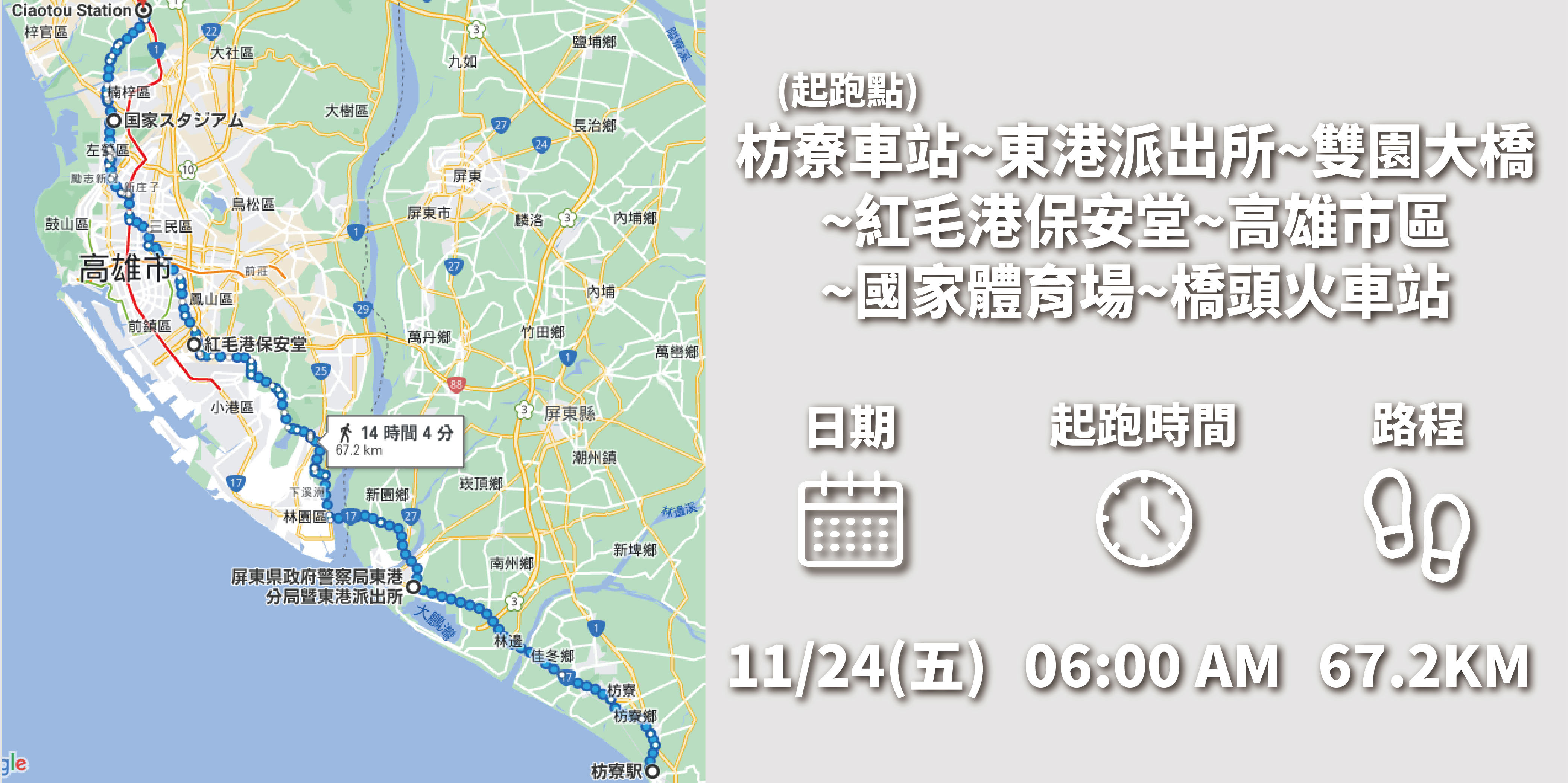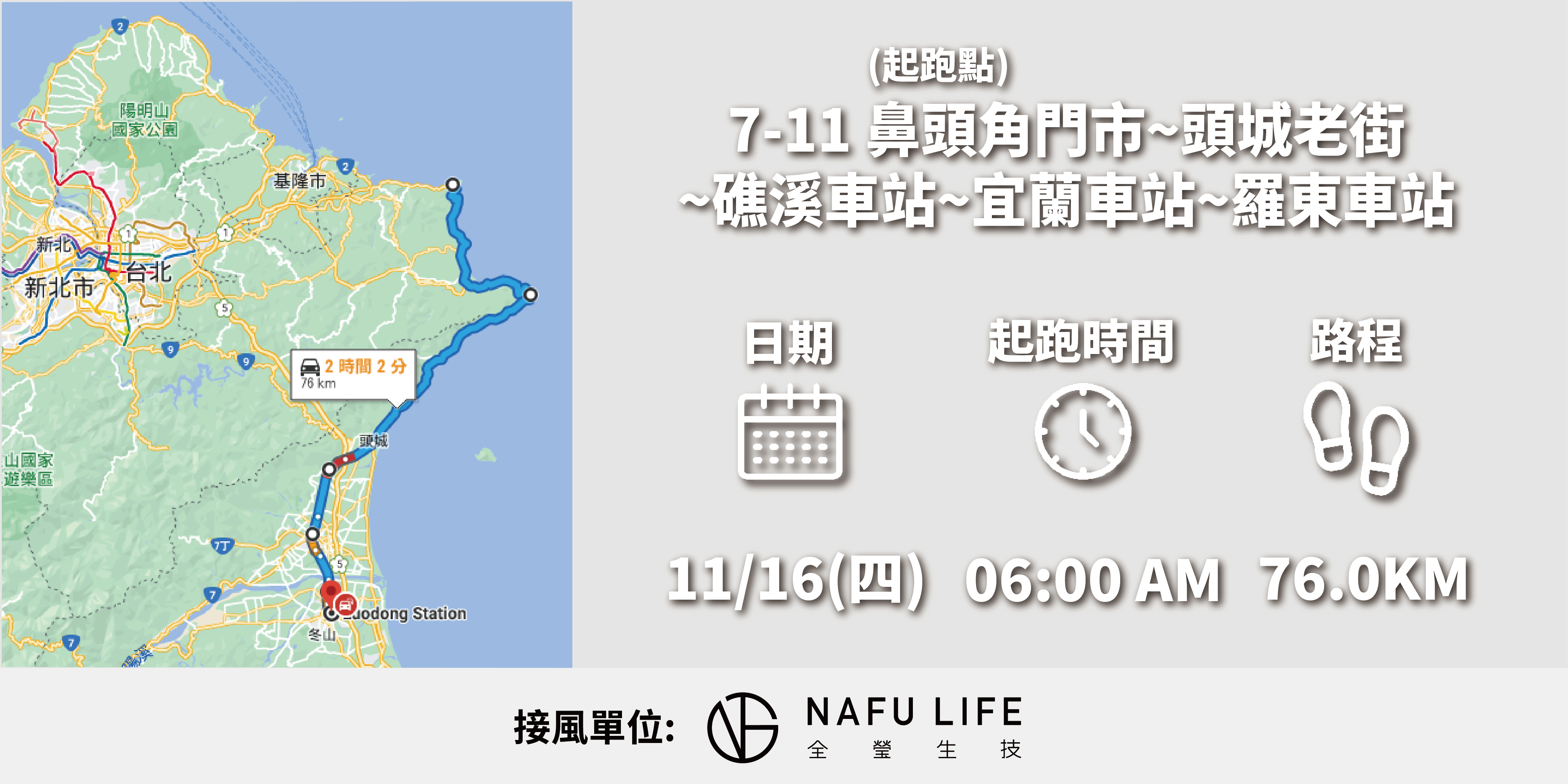 沿途路線將設有贊助商的補給品,歡迎各縣市的跑者、民眾來響應。