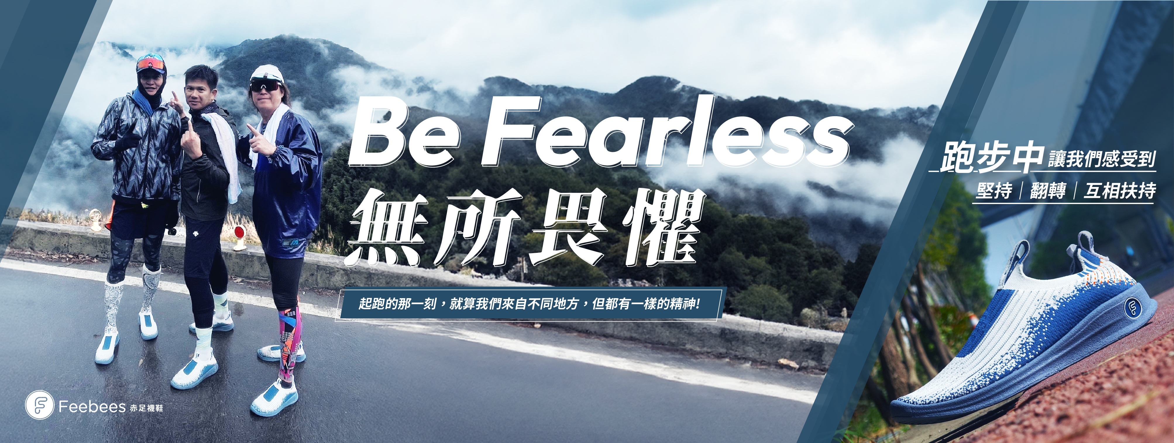 Feebees創辦人-谷銘、中華職棒金手套-馮勝賢、董事團樂團主唱-吉董,三位超馬素人,穿著一吉邦系列襪鞋挑戰鎮西堡80K成功完賽。三人完賽後,更是以「一吉邦」為命名,紀念這歷史性的一刻,此款式在2024年正式投產!