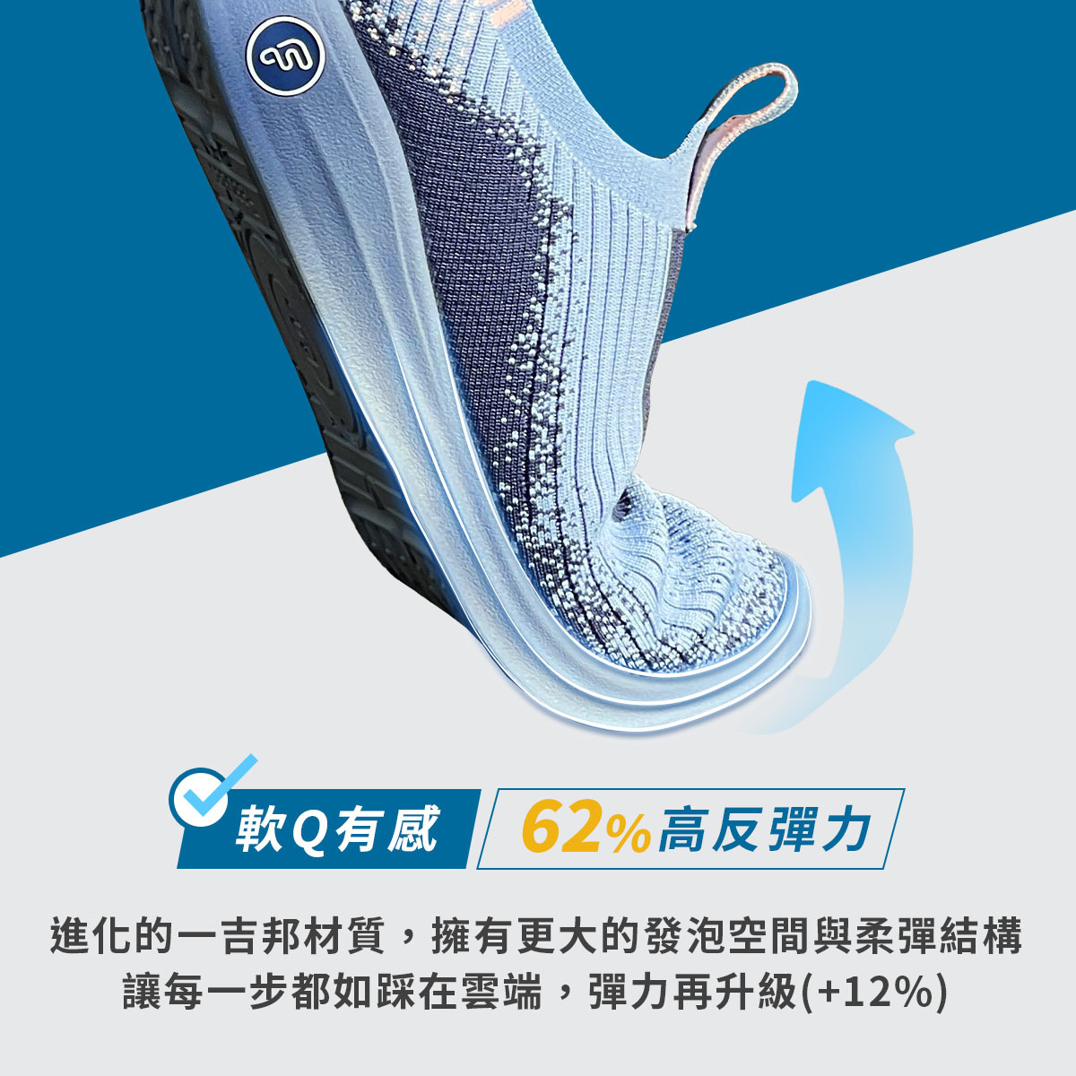 一吉邦系列襪鞋開發為期2年,創辦人在鎮西堡賽前成功研發而得以問世,打造不可思議的鞋底材料,集結輕量/軟/超彈力/止滑,成為史上最Q彈的襪鞋,挑戰業界第一。