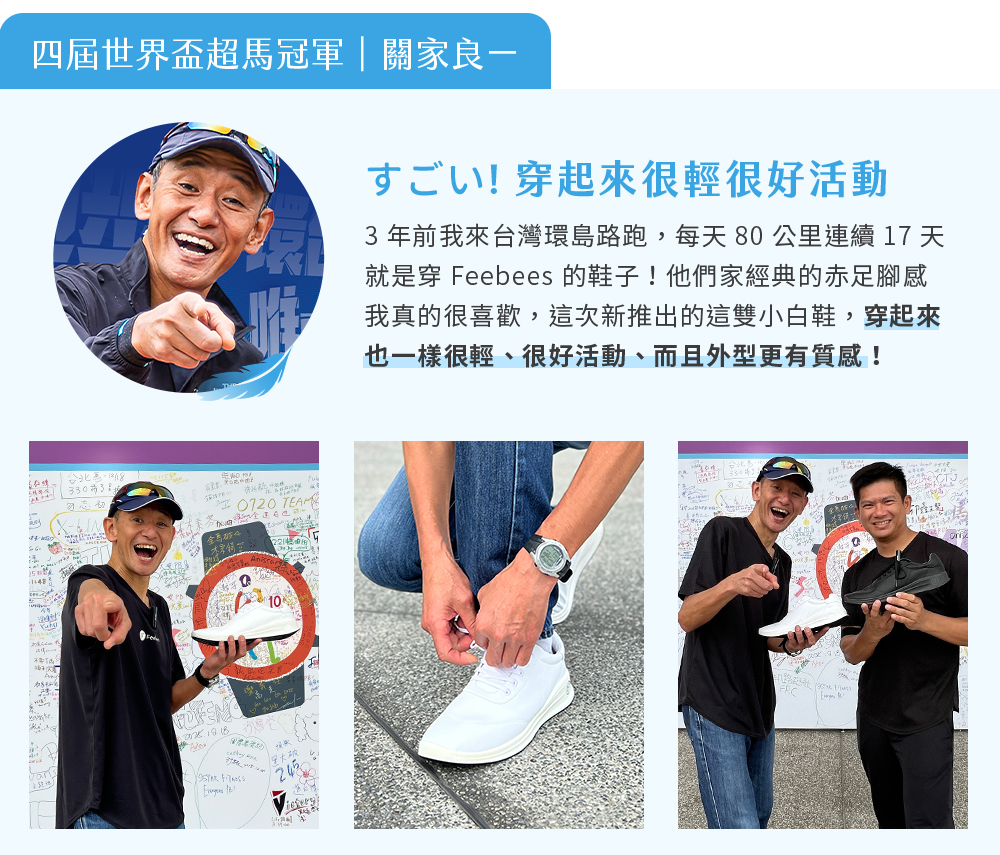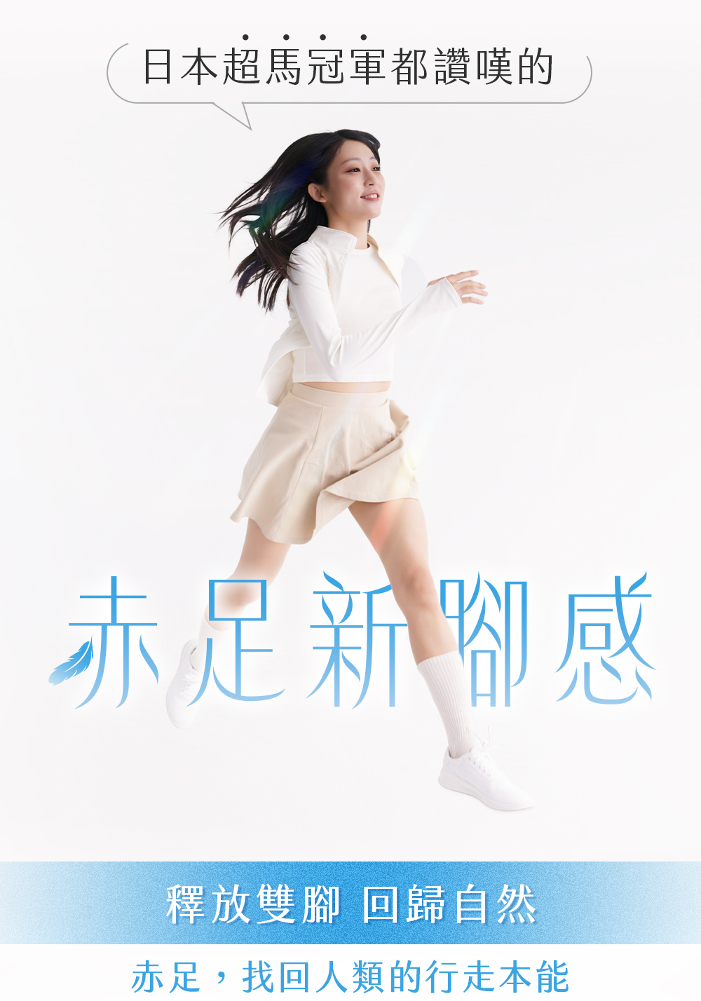 赤足經典,全新樣貌!日本超馬冠軍讚嘆的黃金回彈赤足腳感、 0.9mm 超纖皮革、4E 寬楦設計,給您前所未有的親膚、輕盈、自在。日常✕商務✕休閒,還可以穿去運動!全場域這ㄧ雙就夠!