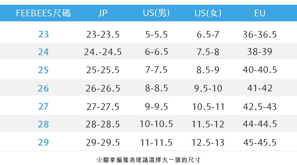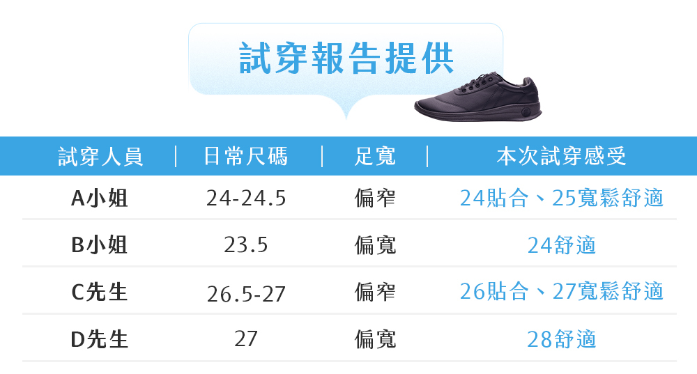*穿著上建議配貼身薄襪、若您習慣穿厚襪或是寬腳者則建議往上選一號